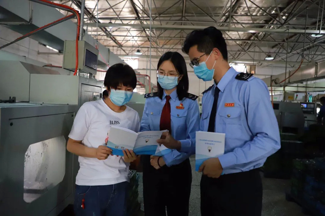 图为珠海税务干部走访当地企业,为企业宣传解决涉税难题。