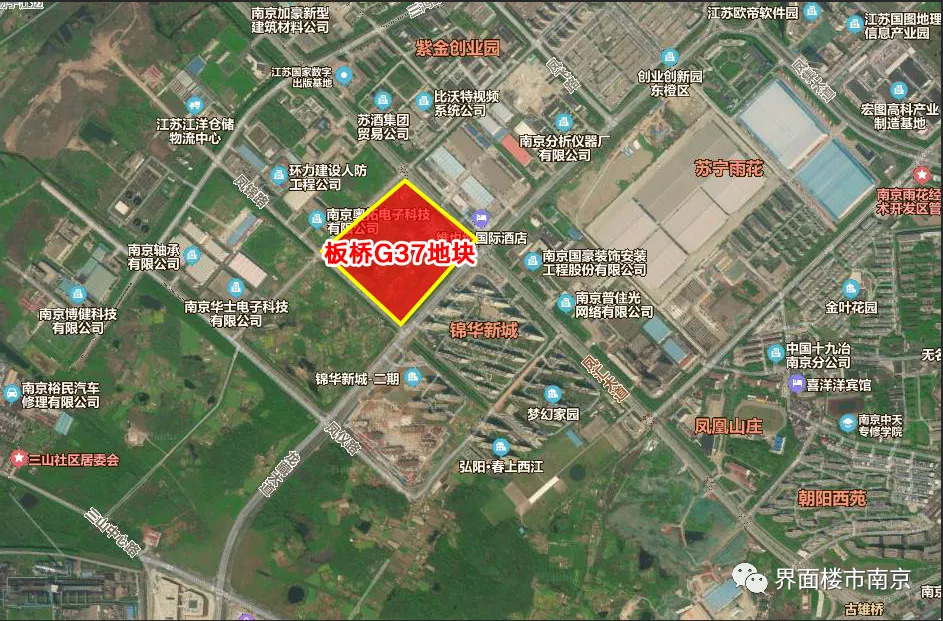 G37地块地处板桥经济开发区,位于软件谷西片区,该规划区是南京软件产业“一体两翼”结构中南京软件谷"核心”的重要组成部分,是中国(南京)软件谷的升级跨越区。地块周边产业丰富,有苏酒集团、创业创新园、苏宁雨花物流基地、普天通信、普天大唐、江苏华瑞泰等多个产业基地,南侧为润泰市场和雨花汽贸园。目前区域内新房供应较为短缺,为地块的开发提供了较好的市场契机。