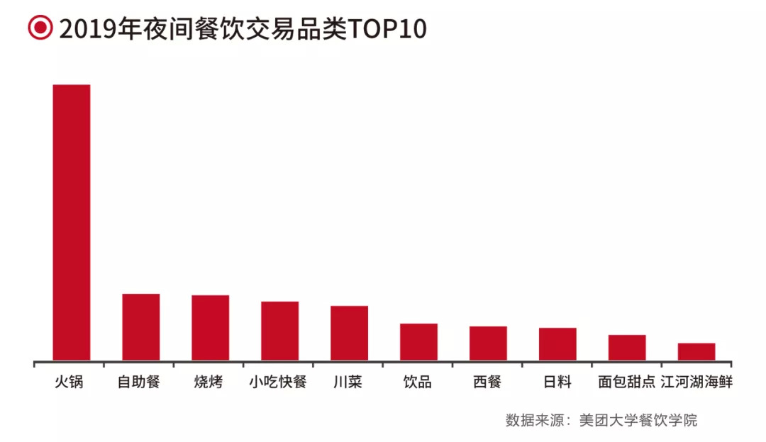 其次,三线及以下城市的夜经济发展态势良好。火锅是夜间经济中最受欢迎的品类。