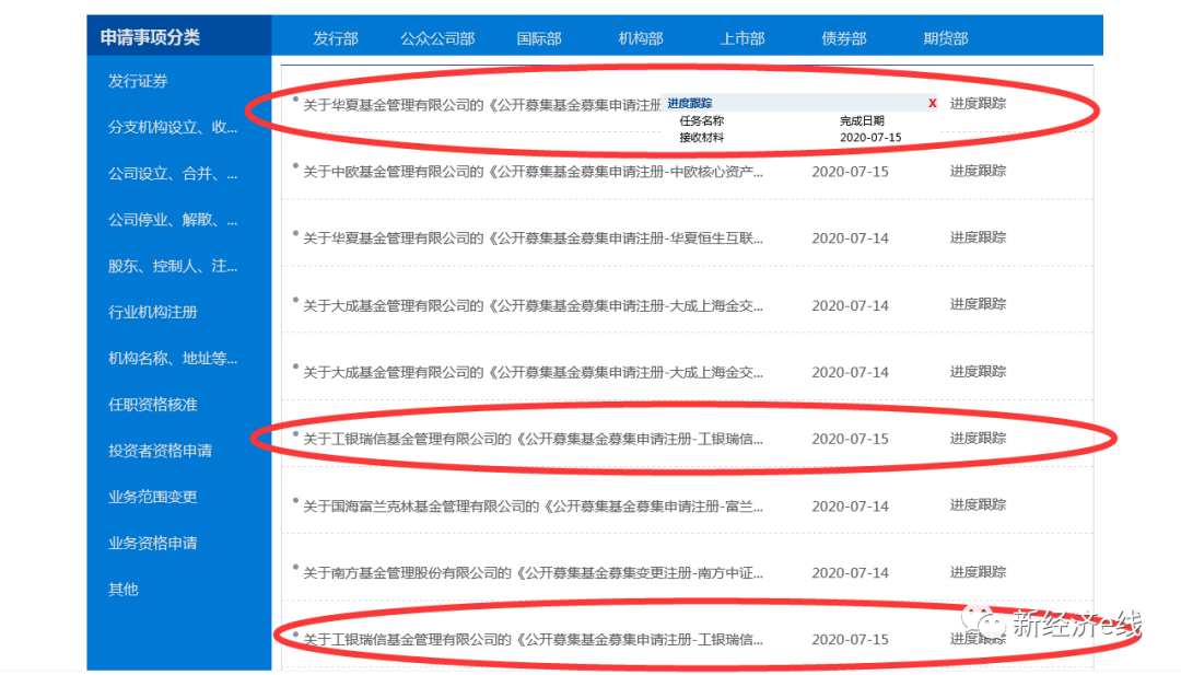 7月15日午后,新经济e线从证监会官网获悉,包括华夏、易方达、华泰柏瑞和工银瑞信在内的四家基金公司已抢先上报科创板50ETF及其联接基金产品,并于当天获证监会接收材料。