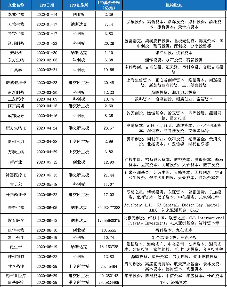 ▲2020年H1医疗企业IPO列表(数据来源:CVSource)