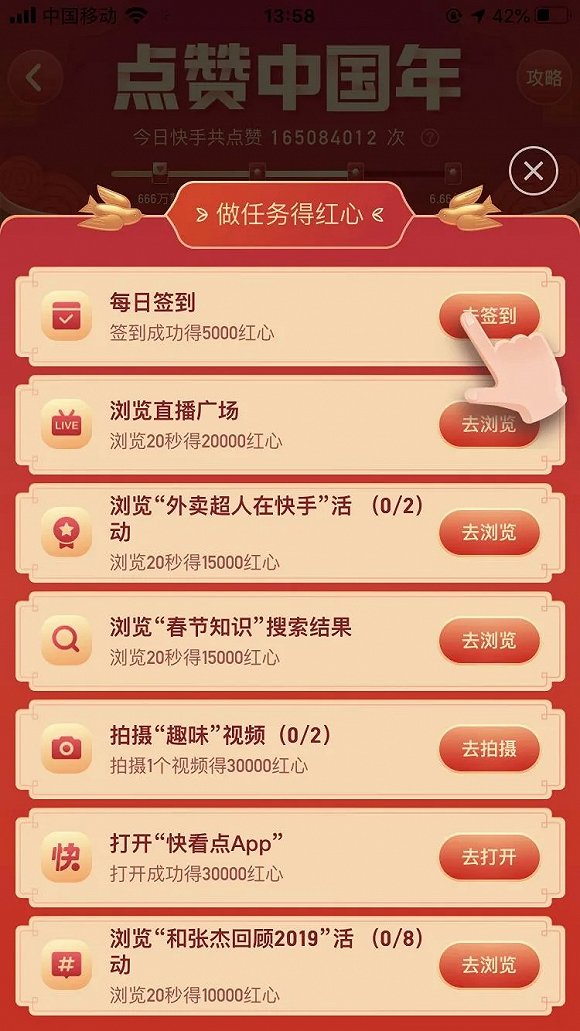 数据表现上,快看点很难超越今日头条,但是快看点也不应该妄自菲薄。首先,快手对于快看点的期望还是挺高的。不然也不会在今年春节的红包活动里,通过打开快看点App做任务的方式,给予其重磅推荐。