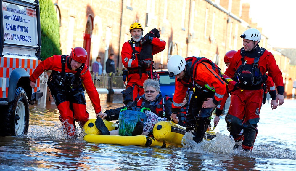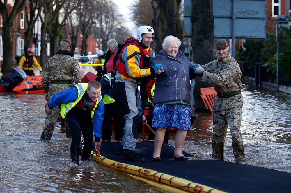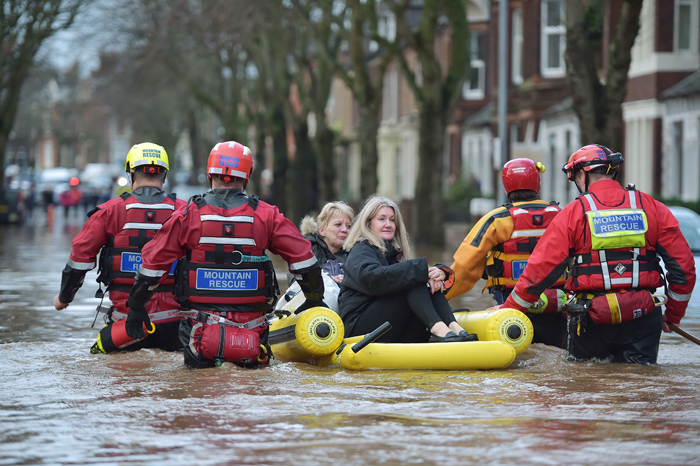 英国气象局发布了黄色预警,政府紧急疏散数千名灾区群众。