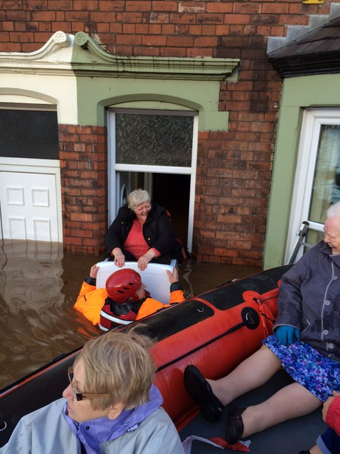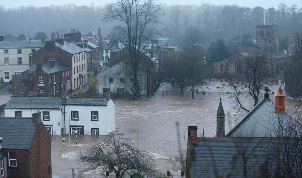 在英格兰西北部卡莱尔市。330毫米的降雨量,让积水涨到了许多房屋的二楼。