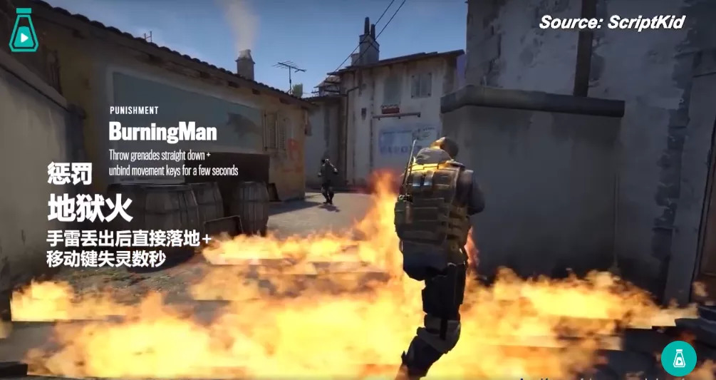 第一个“惊喜”是地狱火,当外挂玩家丢出手雷之后会直接落地,而这个时候外挂玩家的移动键会失灵,所以丢燃烧瓶的外挂玩家会被活生生地烧死。