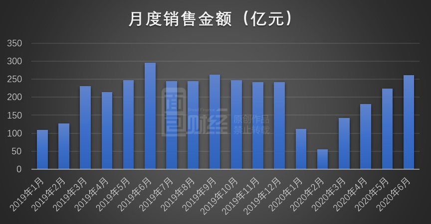 公告显示:6月份公司实现合同销售金额260.66亿元,同比下降11.79%;实现合同销售面积223.38万平方米,同比下降11.83%。2020年1~6月累计实现合同销售金额975.21亿元,合同销售面积877.53万平方米。