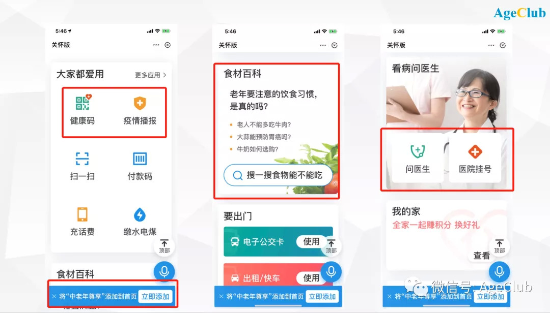 据AgeClub了解,疫情之下,阿里健康开通的线上“抗疫”义诊服务,平台上线4天访问量突破160万人次,更多用户通过在线问诊真正接触到互联网医疗服务,其中包括了大量中老年。