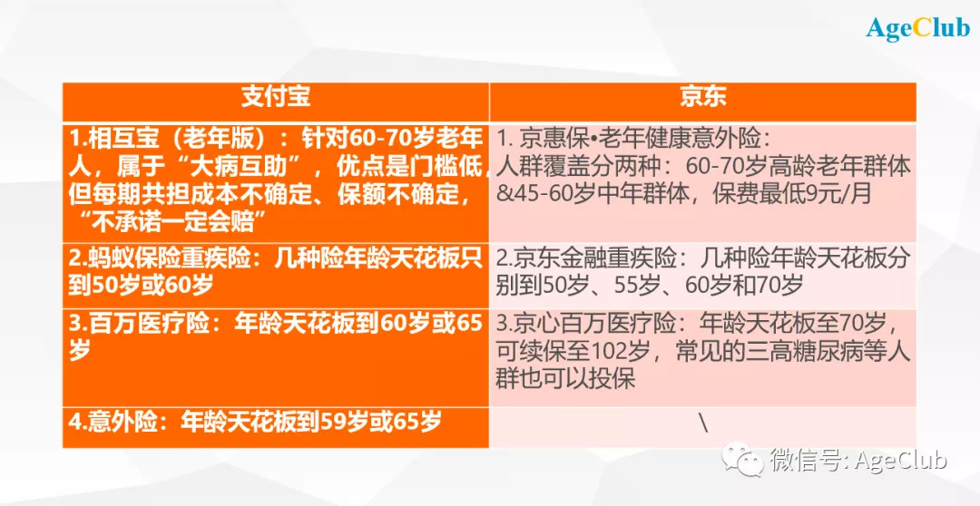对比阿里和京东针对中老年的保险类型,不难发现,相关保险类产品日渐丰富,但同时我们也看到,伴随产品创新的过程中,质疑的声音也时有传出。