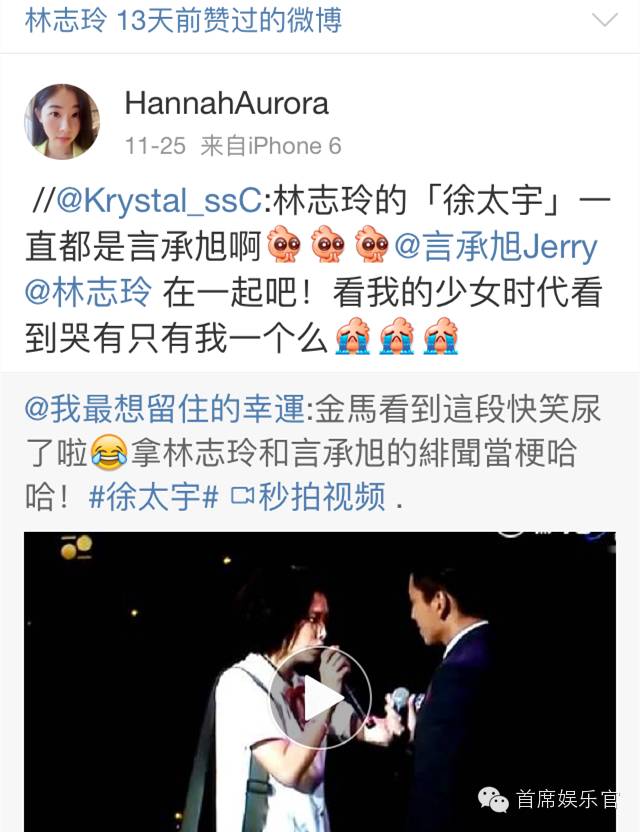 但是!剧情再次逆转,林志玲在言承旭新女友绯闻爆出的当天竟然还给跪求复合的微博点赞了!