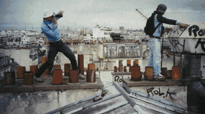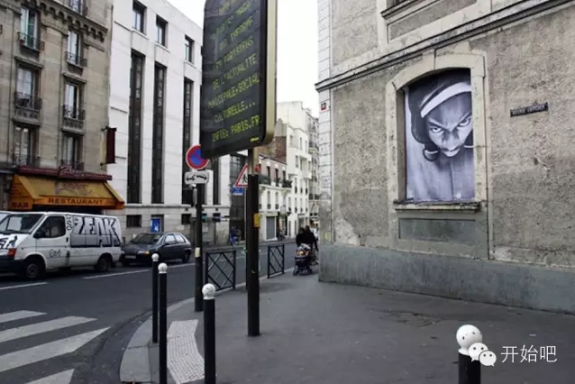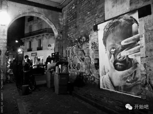 就在地铁游击战中,JP捡到了一台廉价相机。他开始将自己拍摄的照片打印出来,贴在城市最热闹的地方,再画上框框。
