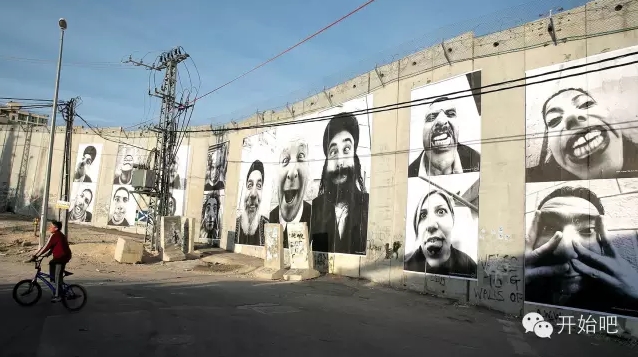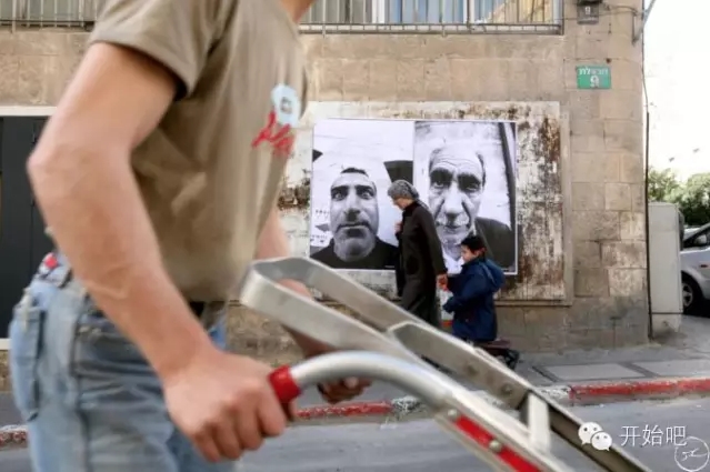 JR将两国人的照片贴在一起,这些照片中的民众有司机、律师、厨师,但是没有人,没有一个人,能够辨认出这中间哪个是以色列人,哪个又是巴勒斯坦人。