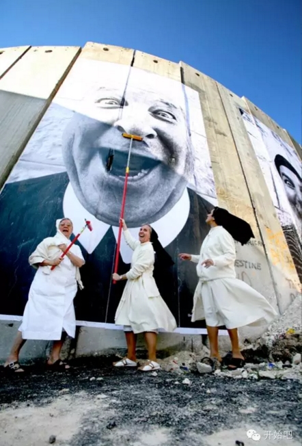 在巴勒斯坦时,他们正往隔离墙上贴照片,一个本地人问:“你们在干嘛?”