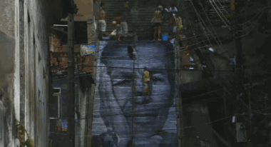 他为其中一个孩子的母亲拍摄了照片,并将其贴在了贫民窟的一个阶梯上,孩子正是在这里被抓走,就是在这个阶梯上非法交易、战火斗争无时无刻不在进行着。