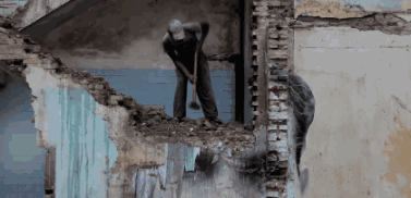 “他家搬走了,把挡雨房顶也一块儿挪窝了。”