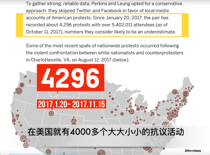 在讨论企业做出的决策之前,首先需要理解为什么弗洛伊德之死会引发如此强大的社会震动。在纽约生活的犹太裔UP主郭杰瑞试着回答了这个问题。他在B站视频中援引了波士顿大学的一项调查:2017年一年,美国共有4296场不同规模的抗议活动,大部分是关于公民权利、移民和种族正义的,这三大问题也是美国目前最能引起民愤的社会问题。