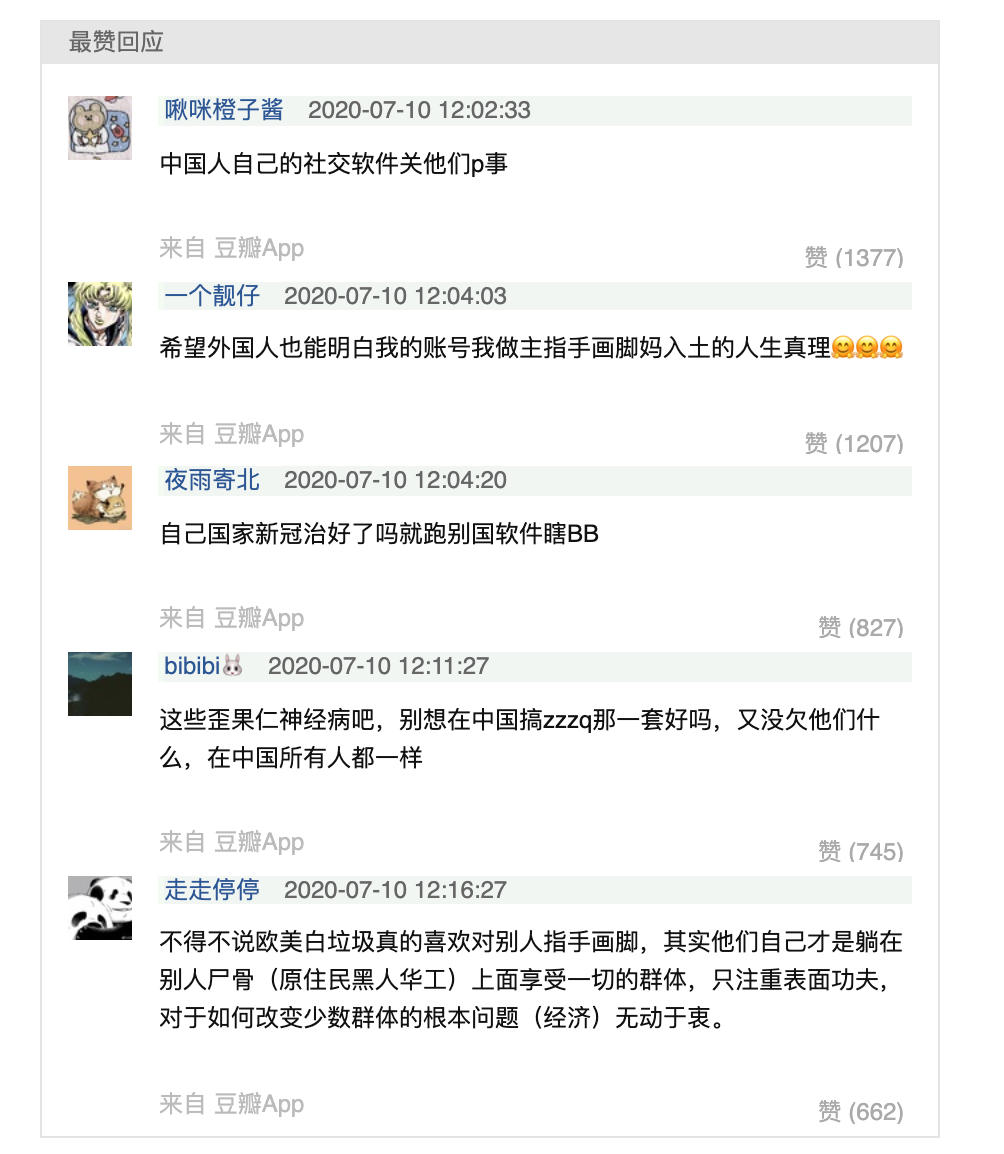 欧美的反歧视运动浪潮甚至波及到中国的社交网络。最近一批来自Tiktok的欧美用户来到抖音,认为部分抖音用户有“种族歧视和文化挪用”的嫌疑。这种指控正进一步激发中国网友对“政治正确”的反感情绪。