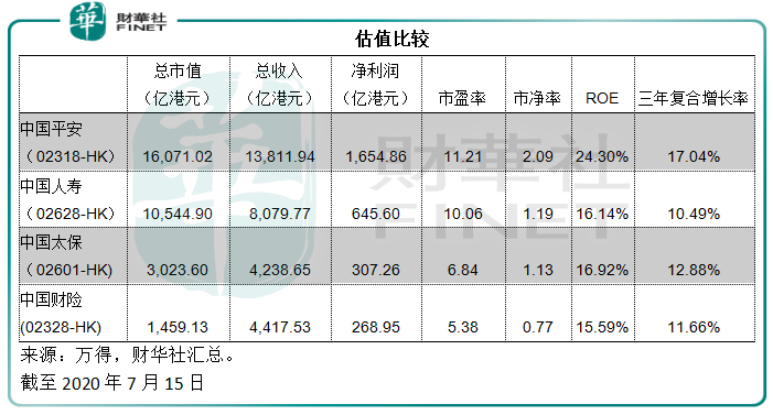 如果将时间轴放在2020年3月19日至7月16日收盘,恒指累计上涨15.02%,除了中国财险之外,其他内险股跑赢恒指,其中中国人寿表现最强劲,累计涨幅达到39.19%,这与我们以上分析的业务表现一致。
