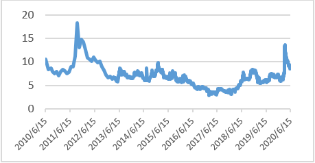 2020年二季度,国内商品市场,交易量环比上升,但波动率有所下降。截止到6月中旬,南华商品指数上涨10.8%。由于国内疫情控制,企业复工,国内需求复苏,工业品价格大幅反弹。海外疫情虽仍在增长,但高峰或已过去,各国政府推进逐步复工,国际原油价格开始反弹。本季度CTA策略总体平稳,在疫情期间,商品期货的夜盘交易停止,导致CTA中高频策略的交易连贯性下降,但在5月后,夜盘交易恢复,交易连贯性得到了一定的改善。