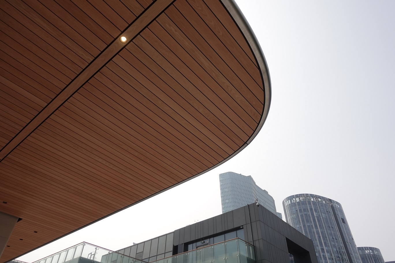 这家零售店在中国开创了数个第一,比如屋顶是由大型3D不锈钢面板所覆盖。这是苹果亚太地区第一家采用集成太阳能电池组的零售店,也就是说店里所有的电力都由太阳能提供,只采用可再生能源。