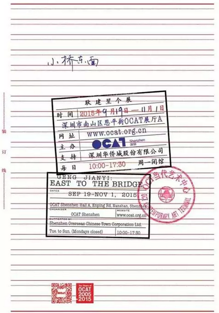OCAT深圳馆于2015年9月19日至11月1日举办“小桥东面:耿建翌个展”,这也是OCAT十周年庆典的重点项目之一。“小桥东面”是一段关于艺术家个人经历的记忆故事,在一个无法预知的回溯叙事中,它呈现了个体命运的可知与无知以及个人记忆的可能性和不可能性间的悖论境遇。