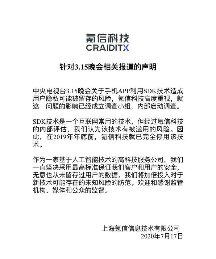 7月16日,在央视延迟四个月播出的“315”晚会中,在香港上市的国美金融(0628.HK)被央视曝光发现,旗下国美易卡APP的含有侵犯用户隐私的SDK插件,与此同时,数十个软件也被发现存在类似问题,央视指出,这都源于上海一家自称为大数据科技公司氪信科技的插件。