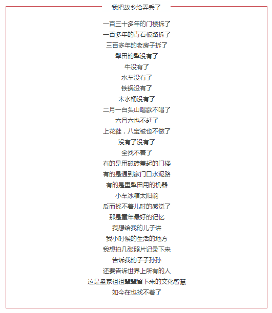 现在,小盘成了一位公益人,找到了自己的发展方向。但在他的笔下,总是流露出对故乡深深的怀想,以及挥之不去的惆怅。也许是辗转过太多地方,见证了太多的流逝与变迁,记忆也变得恍惚。