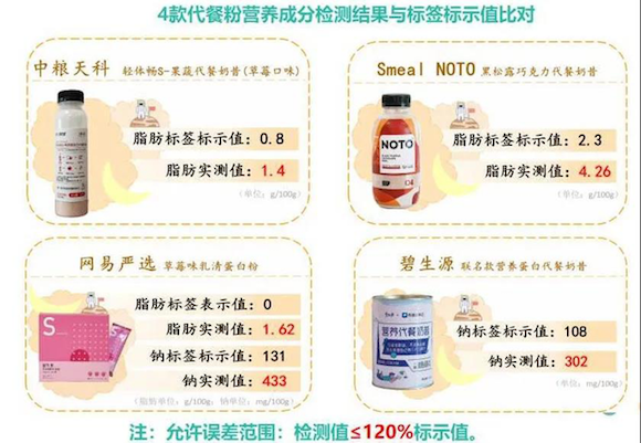 深圳市消费者委员会日前发布了关于《2020年轻食代餐粉比较试验报告》(以下简称《试验报告》),在对选取的共10款(5款国产、5款进口)轻食代餐粉商品开展比较试验后发现,中粮天科、Smeal、网易严选、碧生源四款样品的部分营养指标的实际检测值与其标签标示值不符,未达到GB 28050-2011《预包装食品营养标签通则》的要求。