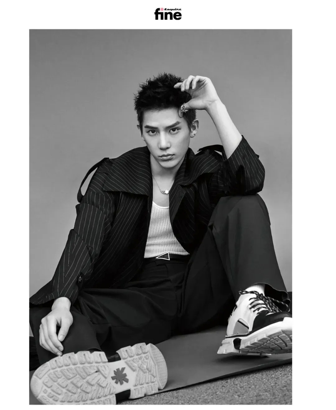王安宇关于自己颜值的启蒙认知始于高中。在那之前,即将考入高中的他觉得自己偏胖,不爱照镜子。到了高中,个子蹿起来了,体重没变,整个人就自信多了,再去照镜子,王安宇发觉,自己长得还「挺过得去的」。「挺过得去」的王安宇最满意自己的眼睛。这双眼睛,据他本人介绍,常被人说成是「像没睡醒一样」。这表示他足够放松,并且享受这种放松,享受这样「沉浸在自己某个状态里」的样子。