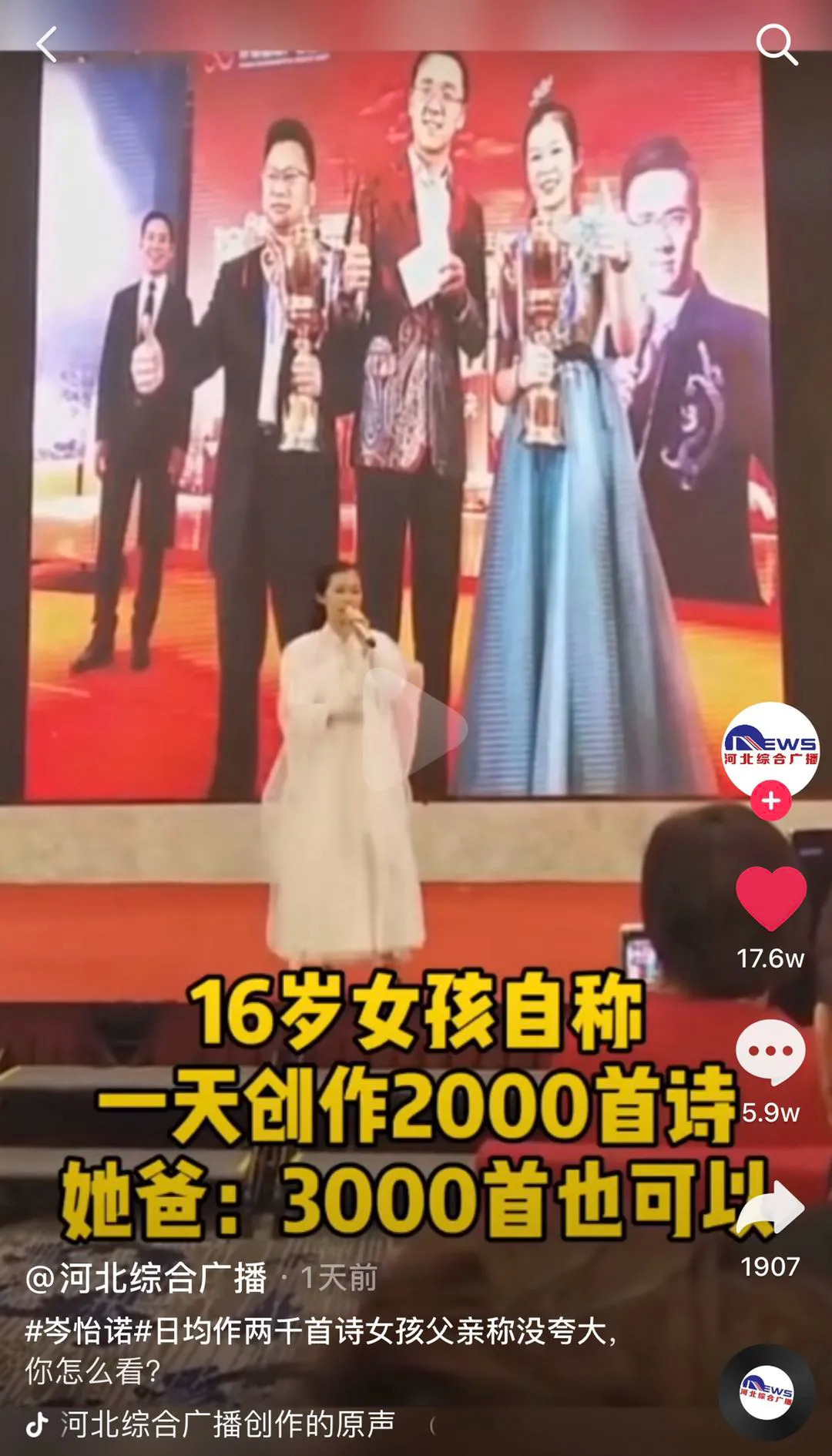 最近刷屏的那位天才少女,也是成功学引流路线。一天能写2000首诗300篇词,真可谓:李白流泪,苏轼沉默,乾隆不服气。当大家指责过度包装的时候,忽然发现女孩老师居然是“成功学大师”。