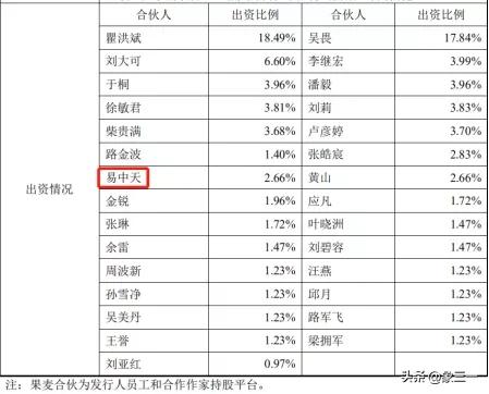 在果麦文化的员工和合作作家持股平台中,还可以找到易中天的名字,易中天所涉版权同样是果麦文化每年的采购大头之一。
