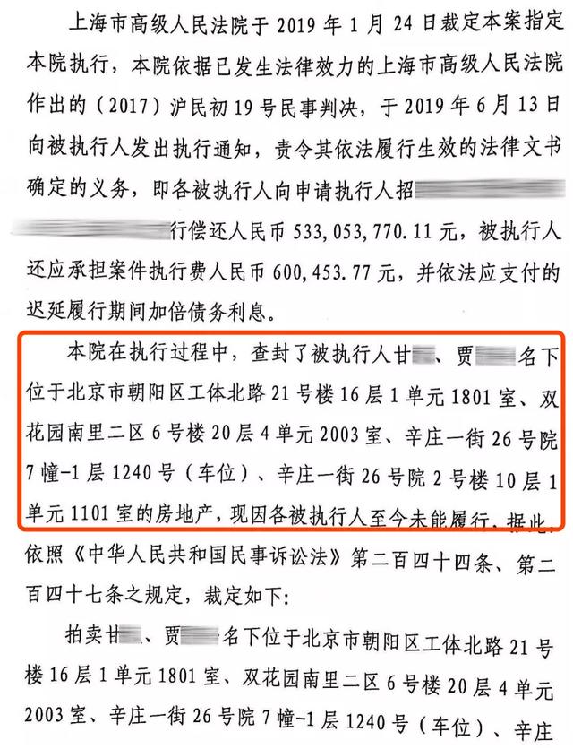 01、涉5.3亿欠款案,甘薇房产被7折拍卖