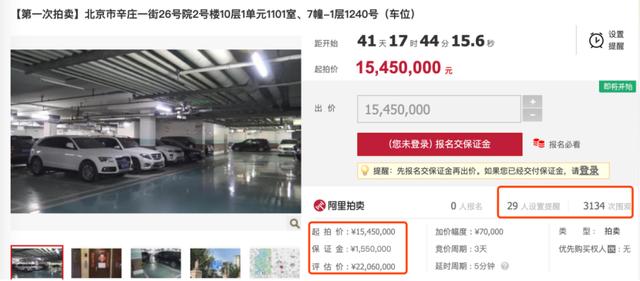 截至发稿,该法拍房已有3000多人围观,29人设置提醒,暂无人缴纳155万元保证金报名参与竞拍。
