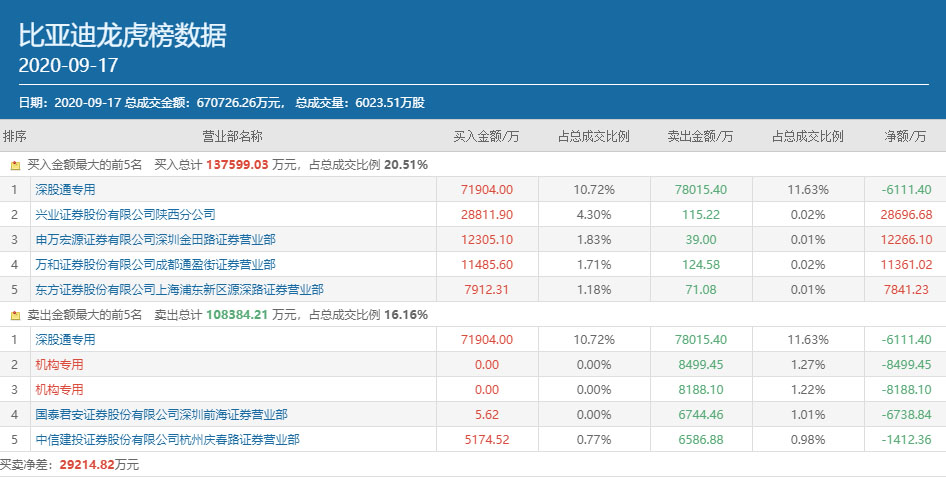 事实上,此前两个交易比亚迪也是分别大涨9.51%和4.05%,也就是说最近3个交易日内,该股的涨幅已经高达25%。比亚迪9月17日公布的3日龙虎榜数据,同样也是知名游资云集。