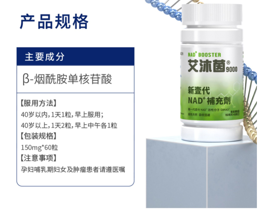 如今随着科学的进步,科学家们发现一种名叫β-烟酰胺单核苷酸(简称NMN)的物质能够起到防衰老的作用。基于此,已经有药企研发出具有NMN的保健品,被称为“长生神药”,并且在市场中取到不俗的销量。