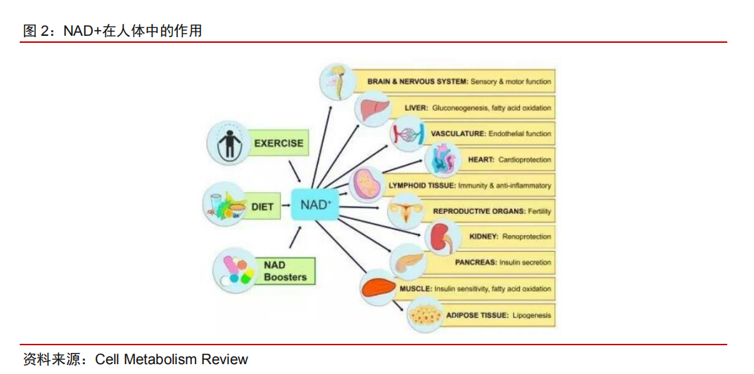 在人体中,辅酶 I(简称NAD+)是极为重要的一种辅酶,参与到人体细胞几百种重要代谢酶的作用过程中,NAD+与人体代谢、糖分酵解、DNA复制等行为都密切相关。