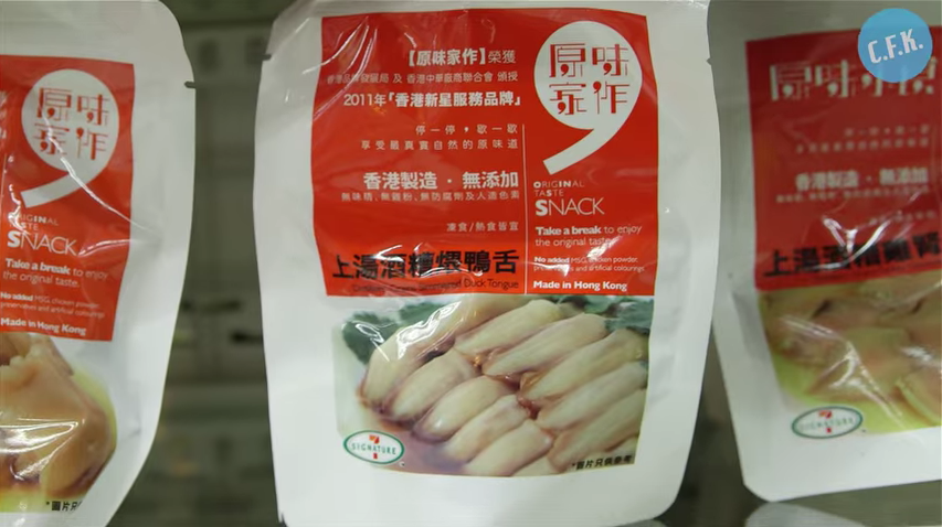 鸭舌是一种非常受欢迎的食物,通常与辣椒一起炸制而成,趁热上桌,鲜嫩多汁。香港7-11的即食鸭舌用橘皮、红酒、高级泡菜汁和其他原料腌制,开袋即可食用,不过千万记得吐掉中部的小块骨头。