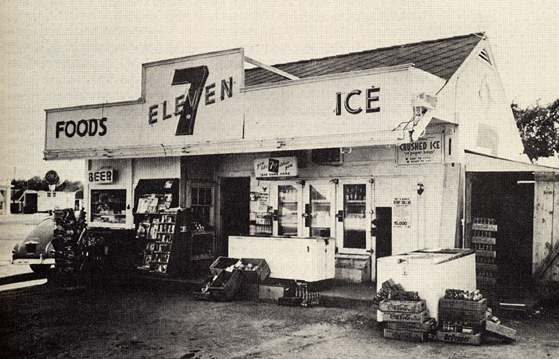 这类商店原来叫作“推车店”(Tote'm Stores),因为消费者总是用推车推走买好的商品。1946年,其正式改名为7-11,反应了当时早7晚11的营业时间。