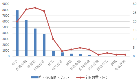 从行业布局来看,电子、医药生物、计算机、机械设备板块的个股是科创板的重点组成部分,这些板块的总市值也在整个科创板中名列前茅,这些板块的总市值都突破了3000亿,在中芯国际的助力下,电子板块总市值成功接近8000亿。
