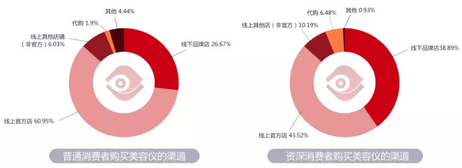 相对于线下渠道,美容仪在线上渠道的情况则乐观不少。无论是普通消费者还是资深消费者,都更倾向于去线上官方店购买美容仪。这也使得线上渠道成为美容仪品牌方销售的发力点。