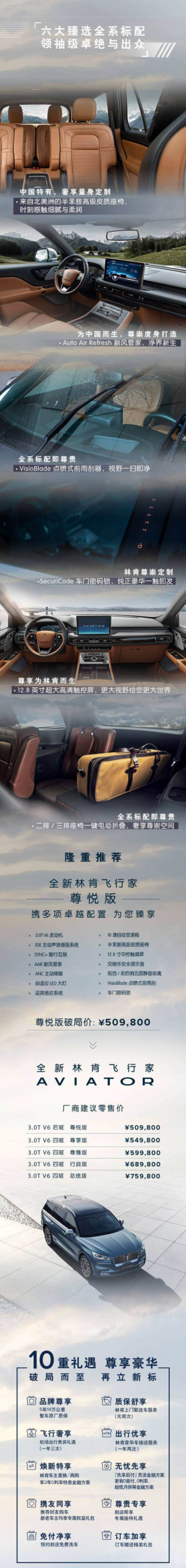林肯“飞行家”作为一辆大型美式豪华SUV,全新林肯飞行家Aviator在三大件上更是保留了原汁原味。全系标配了3.0T V6双涡轮增压发动机,和林肯自家研发的10AT变速箱。最大可输出355马力的动力储备和553牛·米的强大扭矩。这也是在50-60万价位区间中,唯一全系标配3.0T V6的车。