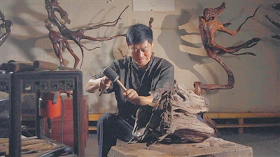 海南黄花梨根雕匠人梁镇师是海南万宁人,在《匠韵琼艺》中,梁镇师介绍自己玩根雕30多年了,根雕的魅力在于可以“化腐朽为神奇”。
