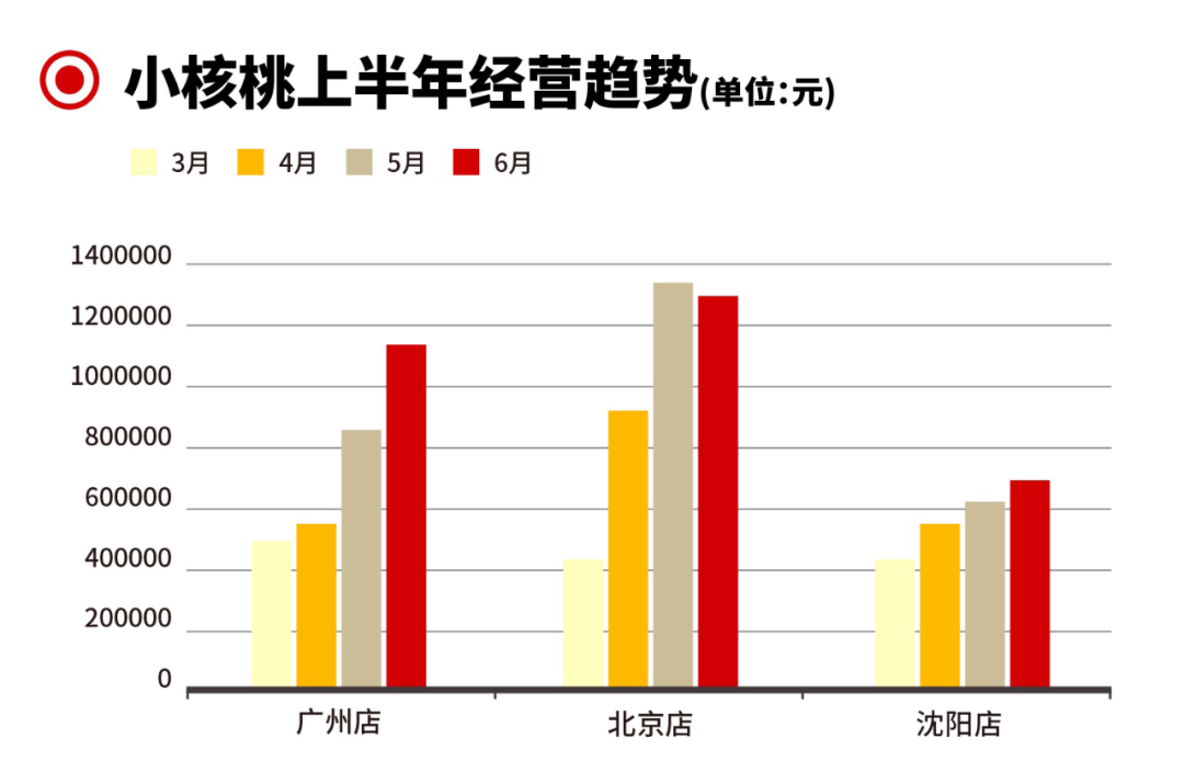 今年年初,疫情的黑天鹅横扫餐饮业,但小核桃似乎并没有受到太大冲击,生意从3月开始就迅速恢复。只有北京店由于疫情反复,出现了些许波动。