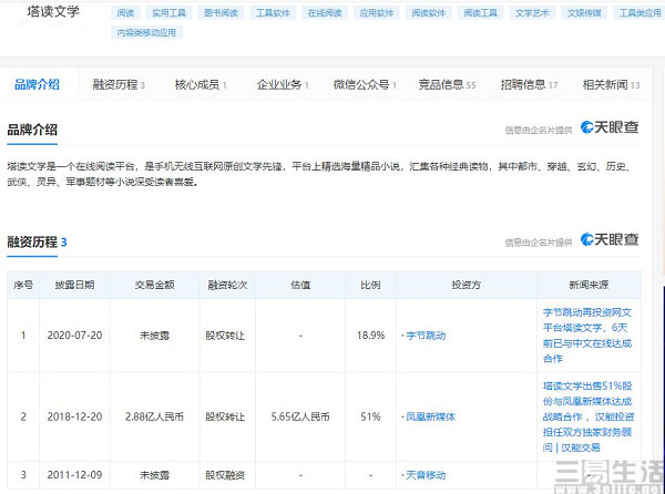 日前根据天眼查公布的信息显示,塔读文学的运营主体北京易天新动网络科技有限公司在7月16日发生工商变更,新增股东为北京量子跃动科技有限公司(字节跳动全资子公司),持股比例为18.9%。而在7月14日,国内数字出版开创者之一的中文在线集团宣布与字节跳动达成《框架合作协议》,将中文在线旗下的知名IP作品授权给字节跳动旗下的的番茄小说及西瓜视频等平台使用。