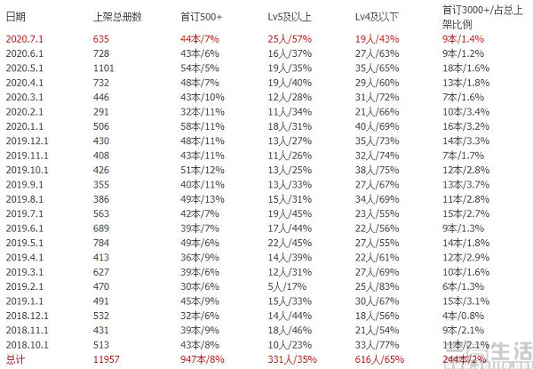 事实上,在这次的阅文事件之中,中低层作者无疑是受影响最大的群体。根据起点数据网中核心小说上架指标的统计显示,在“五五断更节”发生后的6月期间,起点中文网共上架了635本新书,其中LV5及以上的作者,也就是传统意义上的中上层作者数量占到了全部作者的57%,首次突破50%大关。但按照正常的金字塔结构来说,这种情况无疑是不可能发生的,因此这也就意味着中低层作者流失,或者保持观望的情况已经出现。