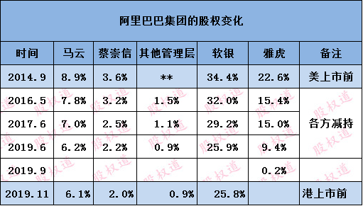 从阿里巴巴的股权变化图可以看到,多年来软银的减持并不多,可能是为等蚂蚁金服上市吧?