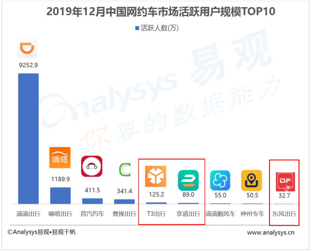 快车、专车方面,虽然目前就网约车市场来说,滴滴的活跃用户规模还是绝对的老大,但是大家换了思路,开始联手对抗滴滴。2018年7月,高德地图上线打车功能,可以同时呼叫不同类型的网约车,2019年5月,美团打车也聚合首汽、曹操、AA等平台,目前在哈啰出行的打车栏中,同样可以同时呼叫阳光出行、曹操出行和首汽和嘀嗒。据易观数据,滴滴2019年的活跃用户数为9252.9万,但是聚合了不同打车平台的高德、百度和美团,它们的活跃用户数比滴滴还要更多。