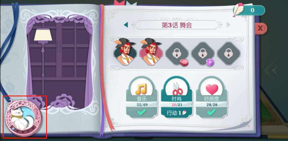 值得注意的是,有时一次行动不足以满足目标值要求,因为换装、角色对话时的选项、学习时回答问题的对错都会影响你的最终收益。如果不达标,玩家就得再通过一次三消关卡,然后继续刚才的任务(好在属性要求虽然固定,但任务内容不是固定的)。