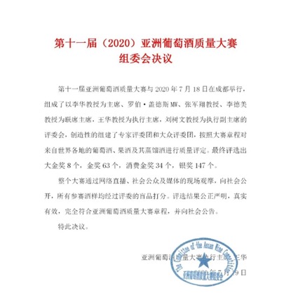 7月18日-7月20日,全球葡萄酒的一场专业赛事——第11届(2020)亚洲葡萄酒质量大赛在成都隆重举行。