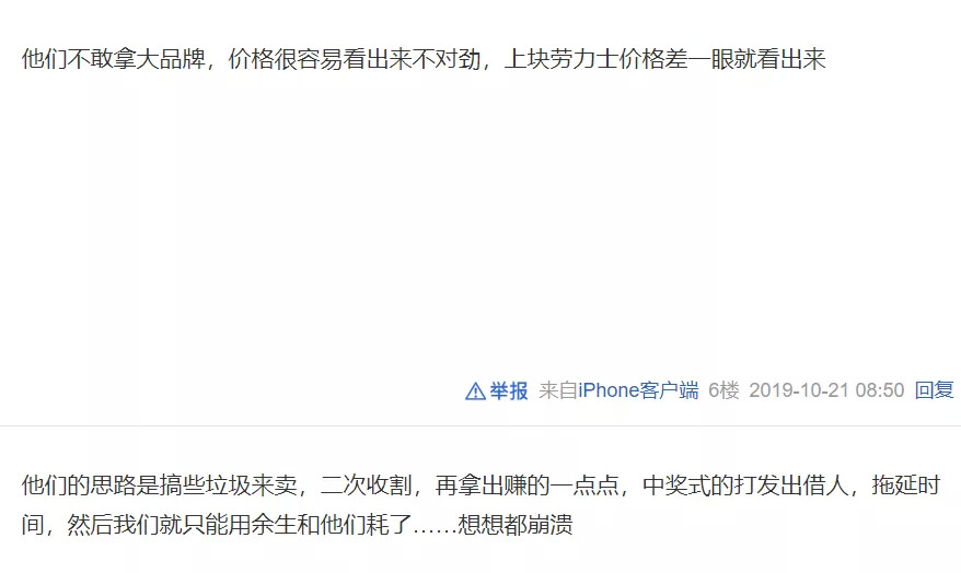 底下有人打出了这样的评论,“要不试试消费金融行业,听说来钱快。”