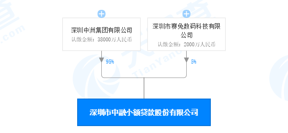 单从股权结构上,中融小贷和字节跳动看不出明显的关联性。据天眼查显示,中融小贷第一大股东为深圳中洲集团有限公司,持股95%,其次为深圳市赛兔数码科技有限公司,持股5%,看不出字节跳动的痕迹。其中,深圳中洲集团有限公司则是由一家境外公司DYNAMIC SUNRISE LIMITED控股,持股比例为96.25%。